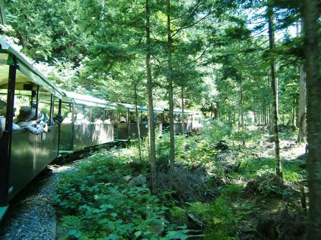 赤沢自然休養林(長野県木曽郡上松町 , 標高1,080m以上)を行く森林鉄道は片道1.1kmで、渓流沿いを走っている。