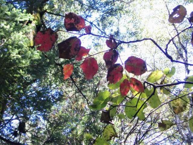 | 紅葉にはまだ遠いけれど、赤い葉もあるようです。 |
