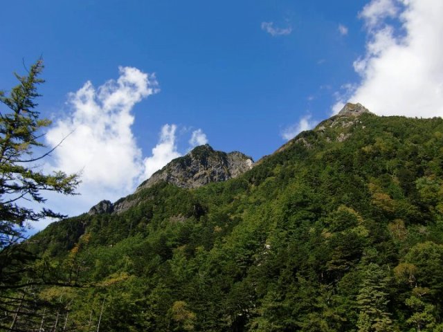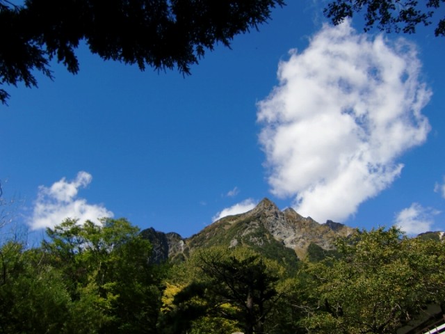 | 真上に明神岳2,931mが見えました。空の青さには参りますとも。 |