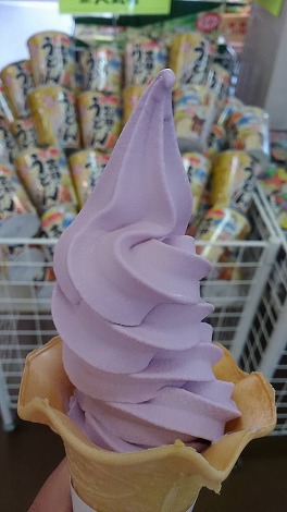 ソフトクリームは巨峰に限ると決め込んでいる、わがままなアタシ。 ブルーベリー200円×2を購入。決して、20円ではありません。