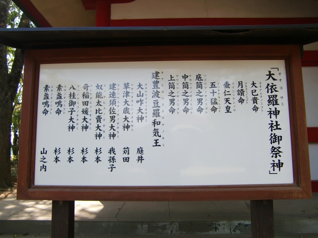 古代豪族・依羅吾彦の祖神、建豊波豆羅和気王と、住吉三神をご祭神としています。式内社で、古くから住吉大社に次ぐ扱いを 受けていた神社ですが、南北朝時代に依羅氏が滅び、神社も衰退していきました。かつて神社の前には「依羅(よさみ)池」と 呼ばれる池があり、古代朝廷直轄の耕作地「屯倉(みやけ)」が置かれていたという記録もあります。あびこ観音や大依羅神社 の由来を鑑みると、依羅氏は百済や朝廷などにも深く関係した氏族と考えられます。 (「大阪あそ歩まち歩きマップ集」参照)