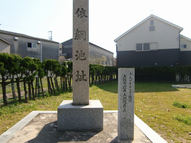 崇神朝の記録に「依羅池を作る」とありますが、仁徳朝説、推古朝説もあり、その起源はよくわかっていません。ただ 日本でも一二の歴史の長さを誇る最古級の人工池であることは間違いありません。かつては10万坪の大きな灌漑用池で したが、江戸時代、大和川の付け替え工事によって、池の2/3が大和川となりました。明治・大正・昭和にはまだ池の 面影は見られましたが、戦後の市街地化によって公園、学校に変わり、現在は全く見られなくなり、幻の池となりました。 (「大阪あそ歩まち歩きマップ集」参照)