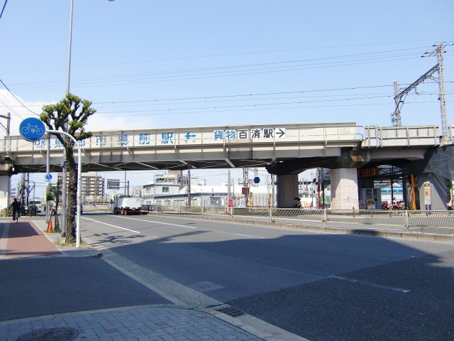 1989(平成元)年にできた、大和路線で最も新しい駅で、写真中の「貨物百済」駅は現在、改修工事中とのことである。