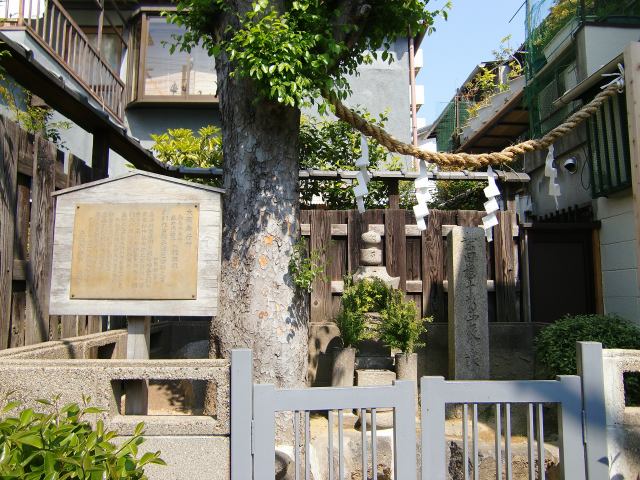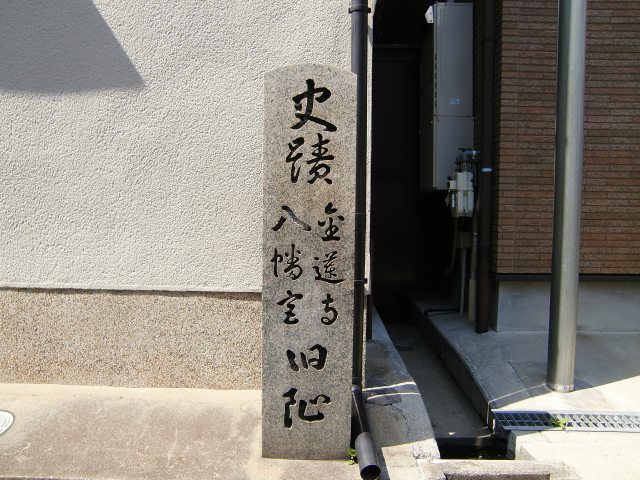 史蹟「金蓮寺・八幡宮」旧隠。「日本書紀」によると、日向の国から招いた美女の誉れ高い髪長姫は応神天皇が桑津に住まわせたとある。