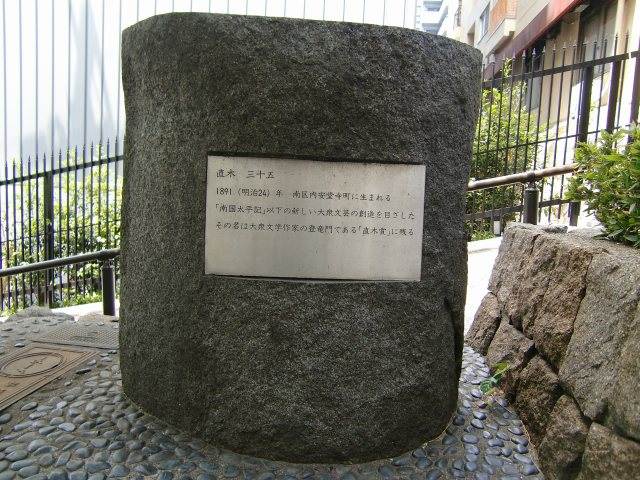 ここは直木三十五の生まれた安堂寺町で、彼の文学碑が建てられている。
