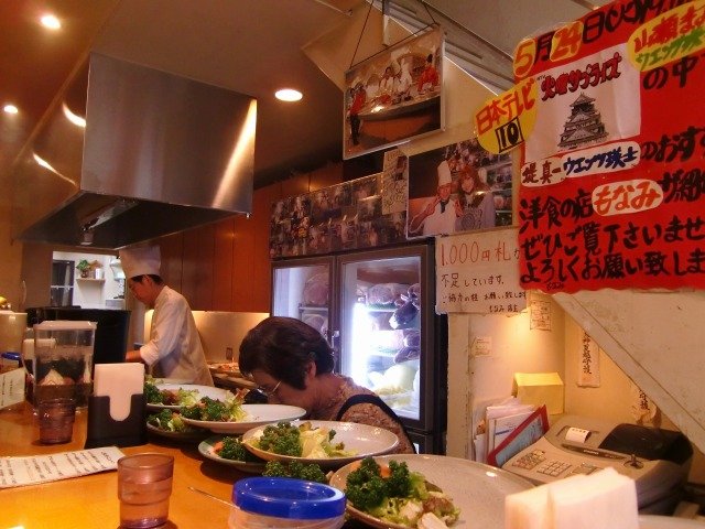 | 「からほり亭」まで行ったが、連れ合いのお気に召さなかったようで、このお店まで戻ってきた。 このお店も、知る人ぞ知る「もなみ」という店で、開店前から行列ができていた。11時30分直前に並んだおかげで、すんなりと 席に着くことができた。 |