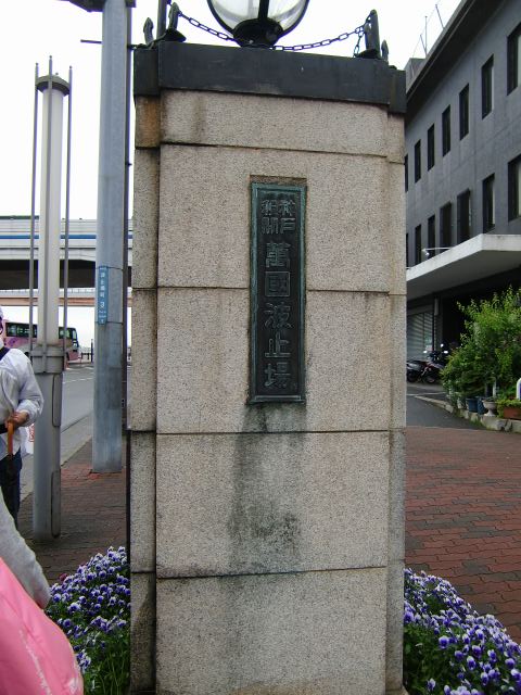| 歩道橋も登ると海の近さがよくわかる。ここからは、神戸ポートタワーもよく見えた。 この下の広場には、兵庫県知事を勤めた陸奥宗光の石碑が建っているが、見学は省略された。 |