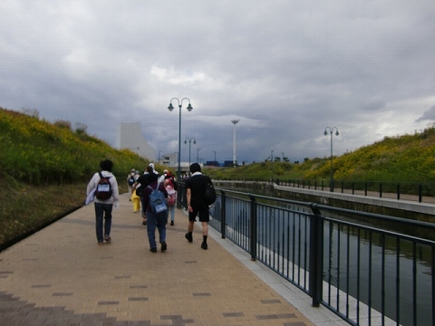 地下鉄中央線を利用して咲洲(大阪南港, 住之江区)へ来るのは初めてである。 咲洲ベイウォーキング8kmコースへ参加した。コスモスクエア駅に近い森ノ宮医療大学グランドからスタートした。 |