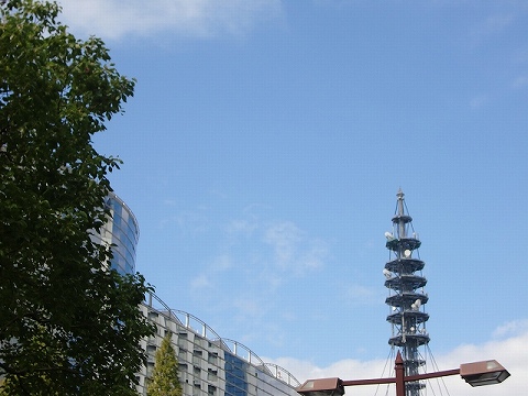 塔の上に青い空。まだまだ満足できるものではない。最終ゴールはインテックス大阪テーマ広場だった。