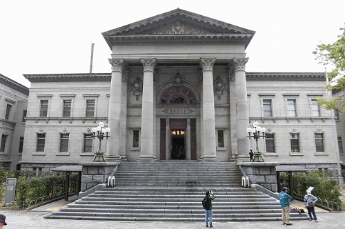 図書館の中央部にあった展示なり。住友吉左衛門の寄付によって建てられました。設計者は中央部が野口孫市氏、左右の両翼が日高胖(ゆたか)氏によるものです。市民の寄付によって建てられたのは、あとには中央公会堂や綿業会館がありますが、その先駆けとなったわけです。