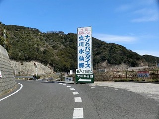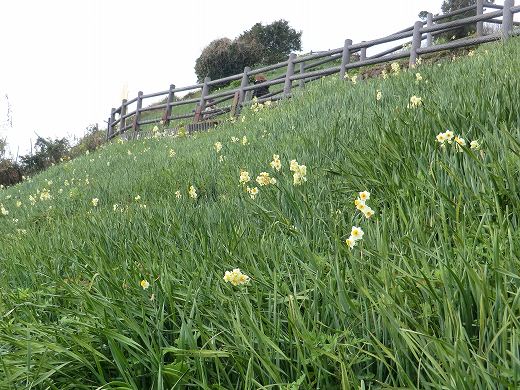 1,「灘黒岩水仙郷」と並ぶ「立川(たつかわ)水仙郷」とTV番組「探偵ナイトスクープ」で紹介された「ナゾのパラダイス」です。 入口からずいぶん下っていきますが、たいていは車で行きます。 2,上の道路から、下に広がる水仙郷を撮りました。