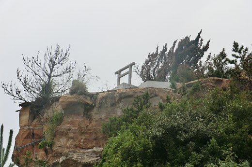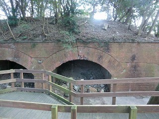 5,由良の港の前に、成ケ島と繋がっている灯台のある島があり(淡路橋立といいますが)、幕末の頃から太平洋戦争まで砲台が造られました。 右の山の上にも立派な砲台が造られたようですが、実際には使われることもなかったようです。 6,山の上の砲台(ここは第1砲台なり)