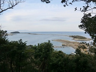7,砲台の説明です。なお、第5砲台まであったようです。 8,山の上から見ると「淡路橋立」がよく分かります。 |