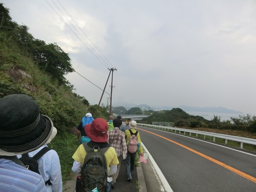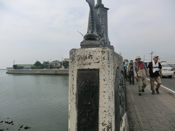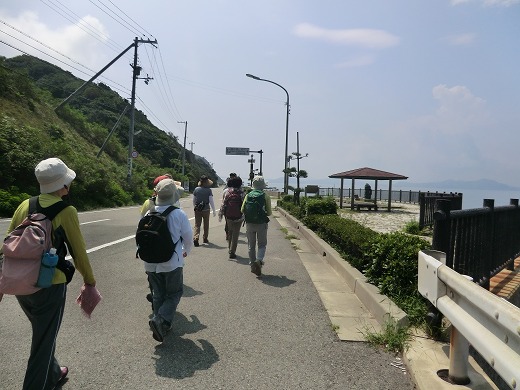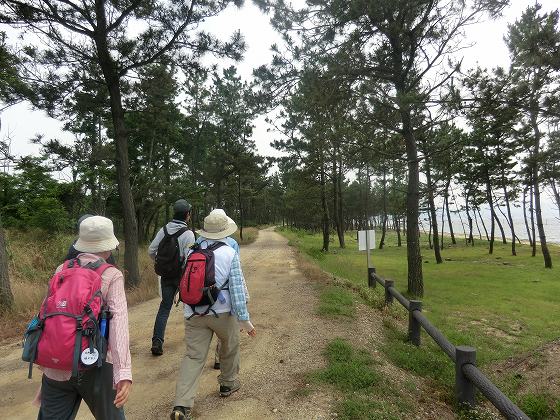 | 第4回<都志海水浴場〜湊> 14km 2014年6月14日 淡路島一周ウォークの第4回です。さほど暑いとは思いませんでした。海のそばで、海からの風のおかげだと思います。UVカット効果や高い速乾性を備えたウエアのおかげでもあります。 ![]() 前回の続きで、「高田屋嘉兵衛翁記念館」の駐車場から出発しました。丘の上の「ウェルネスパーク五色 高田屋嘉兵衛公園」などへ行くこともなく、 足早に出発しましたが、ウォークが中心ですから、仕方ありません。都志川に架かる橋の「高田屋印」、こんな写真で我慢しましょう。 ![]() 緑の道しるべ「角川公園」にある休憩所は、船の形をしているように見えますが、決して船ではありません。 ![]() 「サンセットパーク五色 夕日が丘公園」にて、昼食は冷房の効いたバスの中でした。 食事後に移動した見晴らしのいい丘に「石造舟だんじり」が飾ってあります。実物大の模型です。 ![]() 海から離れたところを歩くことが多かったのですが、五色浜でようやく海沿いを歩くことができました。 ![]() 「名勝 慶野松原」に突入していきます。距離も長く、かなりたくさんの松が生えていました。確か、5万本と説明していました。 ![]() 「名勝 慶野松原」の石柱です。その手前には、延々と、恋人たちの「瓦」が飾ってあります。「プロポーズ街道」と命名されているようです。 ![]() 「瓦」のオブジェでしょうね。ちゃんと見ていませんが、手形を押した瓦が敷き詰められているようです。「ふれ愛かわら舞台」というようです。 ![]() 慶野松原のそばには製瓦所群があり、「御原橋」は瓦橋とも呼ばれているようです。瓦のテラコッタ、納得です。 この後しばらく歩いたところが湊公園、ゴールでした。 |
