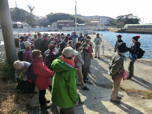 | 第9回<沼島> 8km 2014年12月13日 土生(はぶ)港から土生汽船に乗って、沼島に渡りました。一日10便、所要時間は10分です。 「沼島の春よ、再び」で全国的に有名になった島です。 漁業の島で、ハモ・鯛・ふぐ・伊勢エビなどが豊かに採れるようです。 山の中の道は8kmではありますが、これまでで最も厳しい上り下りがあるという説明がありました。 あはは‥行くしかないでしょう。 万歩計によると、実際には10kmを超えていたと思います。 ![]() 上り下りの続く山道(稜線)を歩きました。117mの灯台のある最高地点まで上りながら、沼島中学校近くの公園まで下りてきて、次のおのころ山に上る(ここだけは本当にきつかった‥)わけですから困ります。 ![]() 総勢45人ばかりがガイドさんの説明を聞いています。ここから山登りがスタートします。 ![]() ![]() ![]() ![]() ![]() おのころ山の上から撮った「上立神岩」なり。これで十分だと、無理やり納得しています。岩の真ん中のハートが見えるでしょうか? ![]() おのころ神社から港に向かって下りていきます。104段の階段なり。下りの方がきついですね。 |