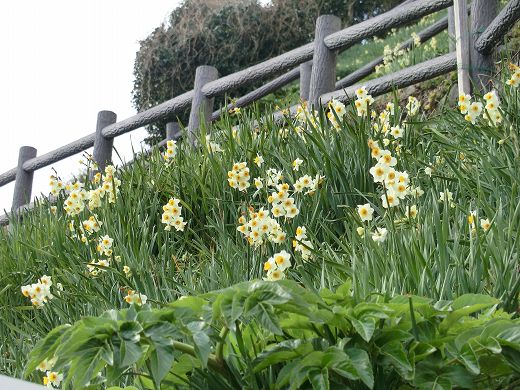 3,ニホンスイセンとは違う種類の水仙があるはずです。なんとか記憶しています。 4,由良の港までやってきました。ここで、遅い目の昼食を戴きました。海岸の堤防から、目の前に「友ケ島」と加太の海岸が見えました。