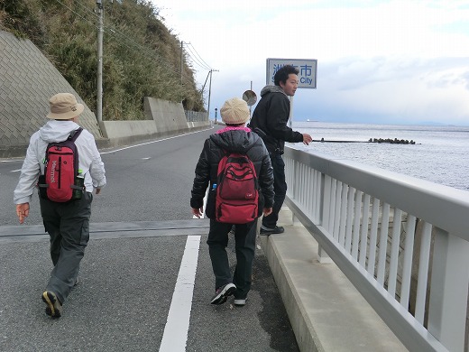 | 第10回<土生港〜中津川組> 8km 2015年1月17日 ちょうど阪神・淡路大震災から20年目の日に、淡路島までやってきました。 バスで移動するとき、震災でなくなった人のために自前の黙想をさせていただきました。 今日は土生港(南あわじ市)から中津川組(洲本市)まで、淡路島南部の海岸に沿って歩きましたが、いつになく早足だったようで疲れました。 あられが何度か落ちてきましたが、傘もカッパも使わずに済んだので、助かりました。 ![]() ちょうど10年前にマイカーで訪れたところです。そのときは、(満開の)見事な水仙と出会うことができました。 ![]() 赤いコーンの向こうは有料(500円)です。山に登り、下りてくるコースですし、30分しか時間がなかったので、今回は登るのをやめました。 ![]() 山を下りてきくる人が写っています。見ての通り、水仙は満開ではありません。 ![]() 水仙の向きがこちらだったので、とりあえず、マシな写真だと思います。 ![]() 一番近い水仙をズームイン。できたてのほやほやの水仙なり。 ![]() ここから洲本市という看板を撮ろうとしましたが、突然ガイドさんが邪魔になったようです。 ![]() 「モンキーセンター」の入口です。小休止だけで、お別れしました。野生の猿が何匹も山から下りてきました。鹿もいましたね。 ![]() 終点は中津川組です。ちなみに「中津川組」は地名です。「畑田組」「相川組」というのもありました。 |