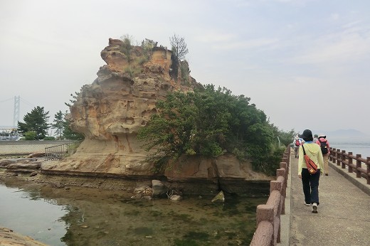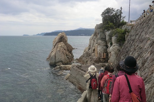| 「淡路島一周ウォーク」 第1回 <道の駅あわじ〜野島断層保存館> 10.9km 2014年3月21日 淡路島一周ウォーク第1回に参加しました。 月1回のペースで、全部で15回のようです。 淡路島を西海岸(西浦)から、反時計回りに歩きます。 今日は冷たい西風が吹き、くじけそうになりましたが、大人ですから我慢しました。やはり、東海岸(東浦)の方が気候は穏やかなようです。 玉ねぎスープ、玉ねぎドレッシング、玉ねぎラーメンの他、淡路島ちりめんも購入しました。 新玉ねぎの収穫は4月になってからだそうです。 なお、びわソフトも、鳴門金時どら焼きも食しました。今回は食にこだわってみました。 ![]() ![]() 松帆の浦は淡路島の最北端。寒い西風が吹き、身を隠すところがないので困りました。 人々が海峡の荒れたときに風待ち、潮待ちをしたのが、松帆(待つ帆)の由来という説明がありました。 藤原定家の歌「来ぬ人を松帆の浦の夕凪(ゆうなぎ)に 焼くや藻汐(もしお)の身もこがれつつ」をはじめ、松帆の浦を詠んだ多くの歌が残されており、古歌に名高い場所だそうです。 江埼灯台(江崎灯台)は1867年(慶応3年)徳川幕府が兵庫開港のの備えとして欧米列強に約束した5つの灯台の一つで 石造りの灯台としては日本で3番目に古く、歴史的・文化的に価値のある建造物です。なお、この写真は、階段に恐れをなして下で留守番をしていたときに 灯台まで上ったツレがガラケー(携帯)で撮ったものです。 ![]() ![]() 江埼灯台の次に立ち寄ったのが、大川公園です。残念ながら、貴重な「貴船神社遺跡」の説明板が壊れたままでした。 ![]() ![]() ゴールは「北淡震災記念公園」です。風車がブルンブルンと音を立てて回っていました。 「野島断層保存館」へは何度か入ったことがあるので、今回は省略しました。 |