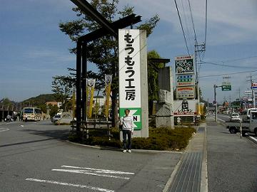 次ぎに着いたところが、高速を降りたばかりの湯郷の里の入り口にある、“もうもう工房”である。WC休憩を兼ねたものだ。ここで、写真を1枚‥。わが全身像である。失望を与えないように、できるだけ小さく?‥期待しない方がいいのだ。