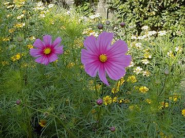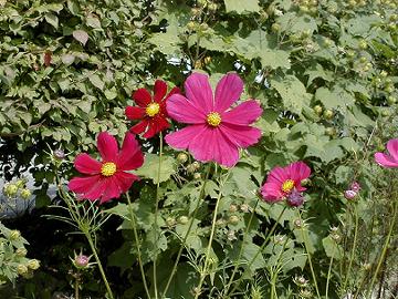 栗拾いよりもコスモス 湯郷温泉をちょっと過ぎたところにある“茶山観光農園”で下車。観光バスでいっぱいである。