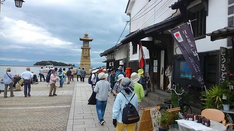 | 日帰りバスウォーク 2019年6月8日 仙酔島1.5km&鞆の浦フリーウォーク 大阪からの往復に約8時間かかり、現地での実働時間はほぼ4時間ほどでした。 ![]() 市営渡船で仙酔島へ。5分で着きました。渡船「平成いろは丸」の定員は100人です。写真は、われわれが下りた後、乗船する人たちです。 ![]() 初めになだらかな山道を歩き、やがて海岸遊歩道を歩きました。 ![]() ![]() ![]() 港のシンボルは常夜灯(元灯台)です。思ったよりも小さいと思いました。右の白い建物は「いろは丸展示館」。入場券が200円もかかるので止めました。ボランティアの方が分かりやすく解説してくれるので、助かります。 ![]() ![]() ![]() ![]() ![]() 鞆の浦主要部を右から左へ。次に右へ。その次は左へ。見ごたえがありますが、時間が足りませんでした。 ![]() 「鞆には龍馬ゆかりのスポットがいっぱいあるき」 ここは「龍馬交渉跡」。 海援隊が「いろは丸」を使い、薩摩藩の依頼で銃や食料品を運ぶ途中、瀬戸内海で濃霧にあい、紀州藩所属の「明光丸」と衝突してしまいます。土佐藩参政、後藤象二郎や薩摩藩士の五代友厚らを引っ張り出し、御三家の紀州藩を相手に交渉を実らせたわけです。賠償は70、000両まで減額されましたが、元は(大図藩が)10,000両相当で購入したそうですから、ずいぶん儲かったようです。 ![]() ![]() |