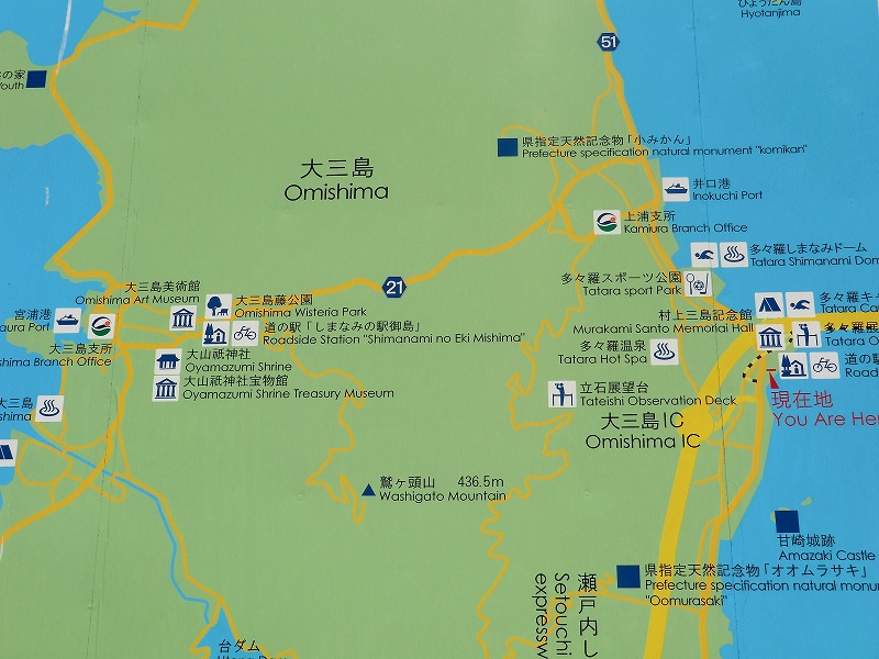 大三島の「多々羅しまなみ公園」から南の伯方島に向かわず、寄り道をしました。