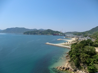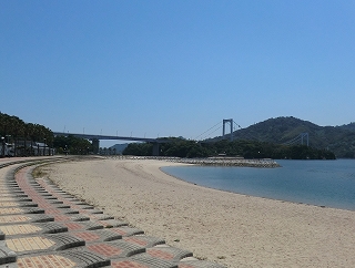 2, 伯方・大島大橋からは、今回の出発点だった「マリンオアシスはかた」のビーチが見えます。こうやってみると、なかなか瀬戸内海も捨てたもんじゃないですね。