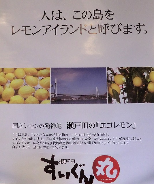 レモンのお菓子とミカンとその他諸々のおみやげを買って帰りました。 ちなみに、村上水軍(元海賊衆)の根拠地は、因島、能島、来島の3つですが、「すいぐん丸」(お店の名前)のある生口島だって、海賊衆の仲間に違いありません。 末裔たちが跋扈しているものと思われます。