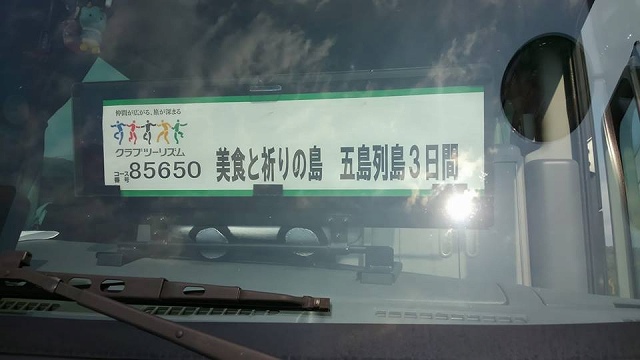 博多まで約3時間。観光バスで長崎港まで約3時間。船で福江港まで約2時間です。結構、時間がかかります。いわゆる九州の西端に向かいます。