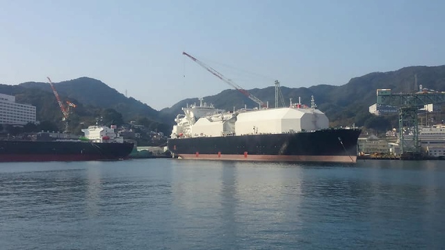 反対側には豪華客船、こちらには豪華貨物船(LPGタンカー)なり。