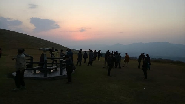 鬼岳には中腹から歩いて登りました。夕焼けの頃のことです。ただし、頂上ではありません。