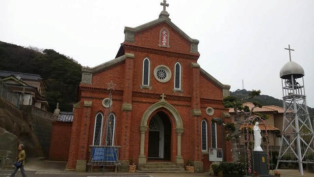 青砂ケ浦天主堂。長崎では必ず帽子を被らず、靴を脱いで天主堂に入ることになっています。
