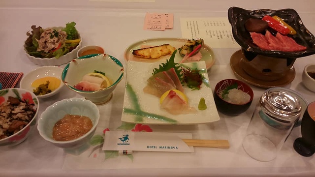 翌26日に福江島を一周したあと、上五島の中心である中通島に移動しました。この日の宿舎はホテルマリンビアなり。残念ながら、温泉はなし。