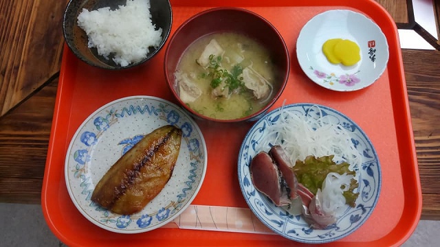 場所を変えて朝食です。焼き魚もブリの味噌汁も出来立てで、美味しゅう頂きました。五島で最も印象に残った食事でした。焼き魚以外はお代わりがいくらでも出来ます。
