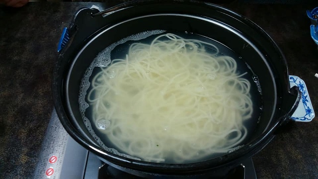 五島うどんはいつも登場します。そうめんより少しだけ太い。決め手は飛魚(あご)出汁(だし)でしょうか。