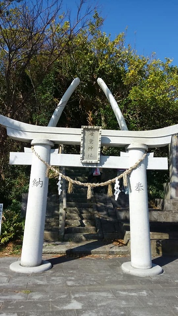 海堂神社。かつて捕鯨が盛んだった有川地区です。鯨のあごの骨が使われています。