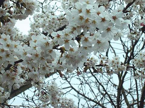 夜中から雨が降り始めました。 朝食後の時間を利用して、散歩がてらに すぐ近くのステンドガラス美術館へ向かいました。 普通の民家の庭に咲いていた桜を撮りました。 足立さん、ありがとうございました。 残念なのは、曇っていたことです。