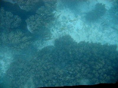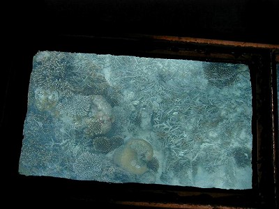 グラスボートから見た海底の様子。珊瑚が見えますが、 天気がよかったら、輝きを増していたことでしょう。 |