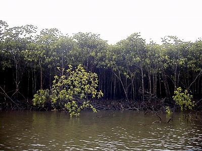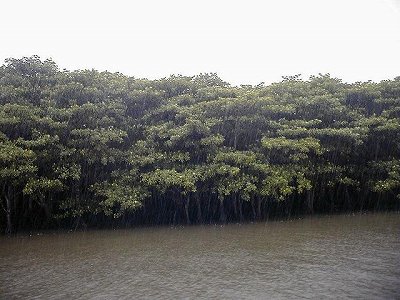 マングローブとは個々の木の名前ではなくて ヒルギなどの林そのものをいうそうです。 実は、小雨が降ったりやんだりでした。 遊覧時間は1持間程度でした。 |