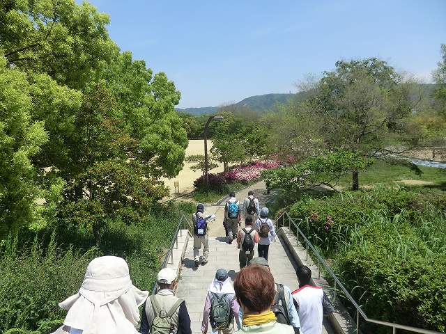 | ねや川・なわて歴史の道ウォーク13km 2014年5月4日 寝屋川市から始まり、四条畷市を通過して、最後は大東市の慈眼寺(野崎観音)まで歩きました。 まだまだ暑さが気にならない五月のウォークに参加したのは、300人あまりだったようです。 深北緑地に着いたあたりから、公園の騒音が気になって仕方なかったのですが、 気がつけば、なんと、わたしの万歩計が防犯ブザー音を鳴らし続けていたようです。 それを止めることができないまま、最終的にはハンカチで包み、 弁当箱に入れて騒音を隠すことに成功したのは、わが親愛なる仲間のおかげでした。 ちなみに、自宅まで手で押さえたまま持ち帰ったまでは良かったのですが 誤って床に落としてしまいました。それが良かったようで‥おかげさまで防犯ブザー音が止まってしまいました。 本日のウォークの後半は、万歩計騒動と人ごみの中の野崎参りで過ぎて行ったようです。。 ![]() ![]() ![]() ![]() ![]() ![]() |