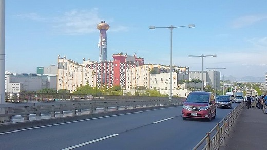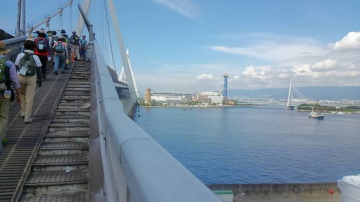 | 舞洲緑地ウォーク12km 2016年8月24日 かんかん照りの舞洲ウォークよりも、此花大橋&フンデルトヴァッサー氏の設計によるカラフルな建物の方に興味が沸きました。 ![]() 此花大橋の長さ1.7km。標高は約35m もあり、螺旋状の通路を昇る必要がありました。往きは、まだ元気ですから、ぐるぐる回るのが楽しかったです。 ![]() あっちの橋(常吉大橋)は、結構低いようです。青い煙突の建物、舞洲スラッジセンターはお馴染みの建物です。フンデルトヴァッサー氏(オーストリアの芸術家、画家、建築家)の設計によるカラフルな建物ですが、実は大阪市のゴミ工場です。舞洲のランドマークになっています。 ![]() こちらは大阪市環境局 舞洲工場なり。舞洲スラッジセンターと対(つい)になっています。 ![]() 舞洲の西の端に小高い山があり、「新夕陽丘」と名付けられています。夕陽の頃がいいからでしょう。わたしは今のところ、御来光の方に心が傾いています。 三角の傘を被っている方の上がちょうど明石海峡大橋です。こんなにくっきりと見えるのは珍しいことだと思います。「村上海賊の娘」のことを思い起こしました。岩屋に集結した村上海賊(の船団)が、一気に大阪(木津)に攻め込んでくるシーンです。余りにも近いようです。 |
