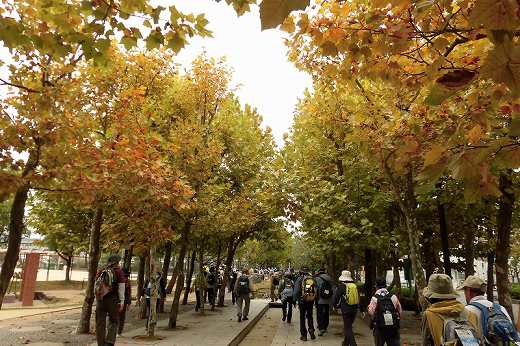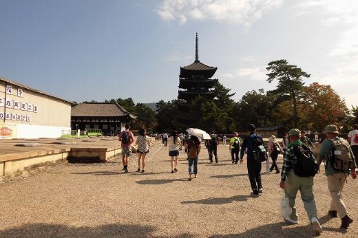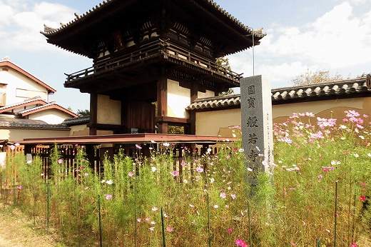| [大阪・関西] ウォーク12km 2016年10月19日 「秋色の奈良史跡ウォーク」というタイトルでした。「秋色」というよりは、「この暑さはいつまで続くの?」でした。 萩の花が咲いていたり、零れんばかりの柿の実が心配になったりでしたが、とりあえず、コスモスと出逢うことが出来ました。 ただ、願ったとおりでなかったのが残念なり。 ![]() 興福寺は、中金堂その他の復元工事中。三条通から二条通への近道となりました。 ![]() 東大寺の境内に入り、大仏殿の横を通って転害門に抜けるのは、去年と同じでした。去年は信号を渡って西に向かいましたが、今年は信号を渡って北に向かいました。 ![]() 明治に建設された近代建築なれど、老朽化が進み、刑務所そのものが閉鎖されるとのこと。ホテルになるとか噂されているようですが、どうなんでしょ? ![]() コスモスの般若寺として有名ですが、ここへやってきたのは初めてです。(この写真ではありません‥)中のお庭に咲いたコスモスが見えますが、拝観料500円は高すぎますね。このレベルのコスモスなら、さほど値打ちは感じられません。(65歳以上は無料ですし)長居植物園のコスモスが咲くのを待ちます。 ![]() 法華寺は総国分尼寺でもあります。左に建っている石柱を結界石というそうです。ここから先は○○を持ち込んではならないということですが、法華寺では「不許酒肉五辛入門内」となっています。酒肉(さけさかな)はさておき、五辛(ごじん)は、葫(にんにく)・韮(にら)・薤(らっきょう)・葱(ねぎ)・蘭葱(ひる)を差すようです。ちなみに、蘭葱(ひる)はあさつきだと思われます。 「酒や臭の強い物を持ち込んでは修行になりません、心構えを持ってお寺にお入りください」ということです。 |