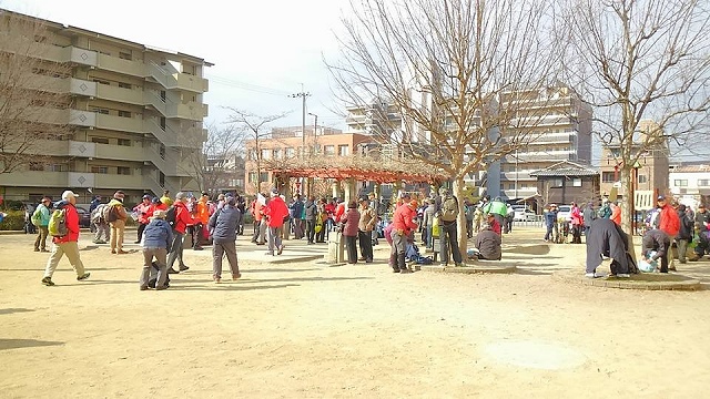 | 七野巡りと梅の北野天満宮 2017年2月15日 JR嵯峨野(山陰)線「二条」駅近くの公園にいます。今宮神社、北野天満宮辺りに向かいます。前回の表彰の写真を頂きました。 「七野巡りと梅の北野天満宮」12km。参加者は333名でした。この前、京都の新春ウォークに失敗しただけに、リベンジ気分でしたが、なんとか完歩出来ました。七野がらみで、以下に追加してみようと思います。 ![]() 本日は、見事に晴れです。隣接のマンションから「五月蠅い」と苦情が出ているそうです。年に数回利用するだけですし、小型マイクのボリュームを思いっきり下げているので、かなり近づかない限り、参加者にも聞こえたことがありません。マンションとは反対向きにしゃべっていますし、なんとかお許し下さいませ。 わが家の隣は保育園でかなり五月蠅いですが、苦情を言ったことはありませんぞ。教室で歌を歌うとき、がなり立てるのではなく、美しい歌声を聞かせて欲しいと、秘かに思うだけでございます。 ![]() この日は雨でした。白いカッパを着ていました。髪の毛の色に合わせたわけではありません。 ![]() 3上野 今宮神社・門前の両側に、名物「あぶり餅」のお店がありました。次回には、必ず購入しますとも。 ![]() 7北野 北野天満宮の梅苑を外から眺める(1) ![]() 7北野 北野天満宮の梅苑を外から眺める(2) |