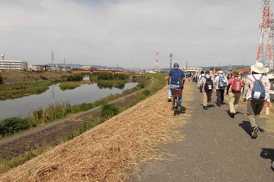 | 摂津の國巡り14km 2017年10月日 【大阪・関西ウォーク】 JR新大阪駅を出て北に向かって歩き、神崎川沿いに下流(西)に向かって歩く。 次は北に向かって旧猪名川、猪名川沿いに歩き、猪名川公園で昼食休憩。 最後に、藻川を渡ってJR猪名寺駅がゴールでした。 そこで、JR川西池田駅(21km)まで歩く猛者達がいましたが、わたしどもはショートコース(14km)で十分です。 身の程を知る、というところでございます。 ![]() ![]() ![]() ![]() ![]() ![]() 猪名川に架かる赤い橋をわたると‥昼食休憩です。ほぼ10km地点ですが、いつも以上に長く感じられました。 ![]() |