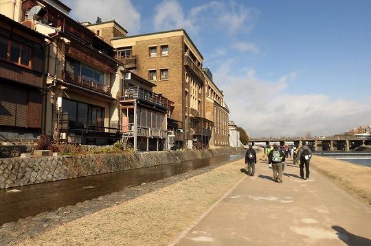 鴨川沿いを歩く。三条大橋手前に、先斗町歌舞練場あり。