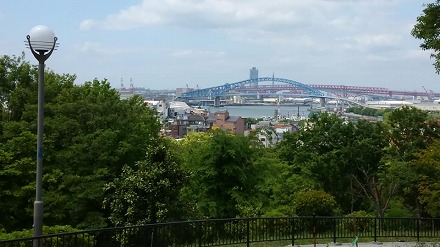 | 楽しいウォーキング 2018年5月9日 リーダーと歩こう 楽しいウォーキング 「渡船と最低山散策」 10km (+3km) 雨上がりのあと、ひんやりとした天気でした。現在運行中の渡船場は8つあり、そのうちの2つを利用しました。人及び自転車が乗船でき、無料です。 大阪市内の5低山はすべて登頂済みです。その高さは天保山4.5m、御勝山14m、聖天山14m、帝塚山20m、昭和山33mとなっていますが、鶴見新山39mの名がないのが淋しいとおっしゃる方々がいるようです。国土地理院発行の2万5千分の1の地形図に山の名前の表記がないわけで、その理由はそもそも市区町村からの要望などがないからだそうです。 ![]() 木津川の落合上(おちあいかみ)渡船を利用しました。4班に分かれて乗船したことになります。 ![]() 木津川のアーチ型水門です。高潮対策として水門を閉じることが考えられています。閉じたところを見たことはありません。安治川にもあります。 ![]() ![]() 33mとなっています。いきなり上るのはキツイものですが、最近は慣れました。 ![]() 山頂から大阪府咲洲庁舎(元WTC)が見えます。角度を変えると、あべのハルカスも見えます。 ![]() 甚兵衛(じんべえ)渡船に乗りました。すぐ上流に尻無川のアーチ型水門が見えました。船に揺られているせいでもありませんが、斜めになっています。 |