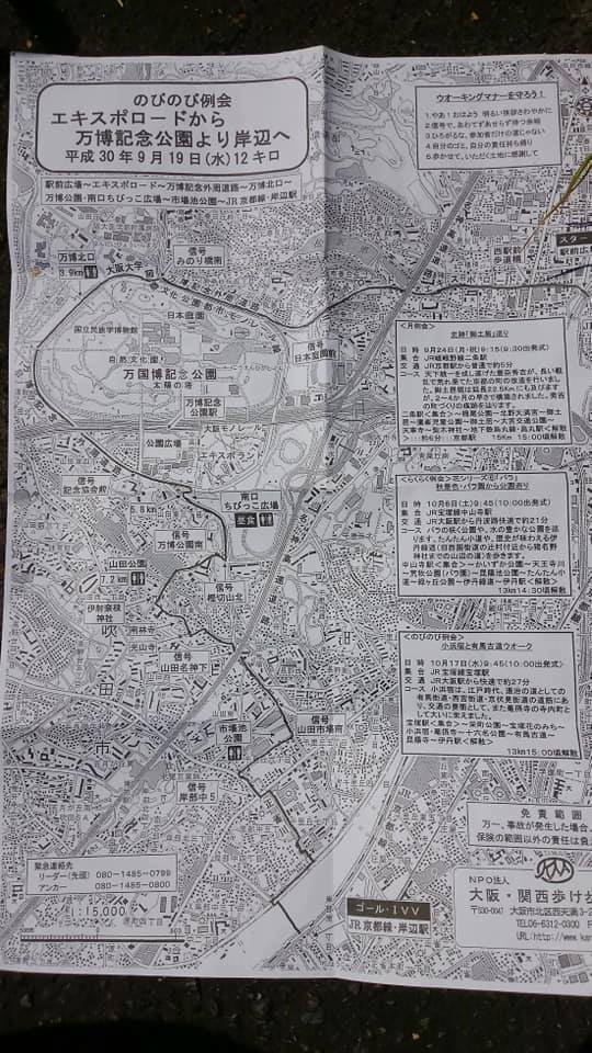 | 大阪・関西ウォーク12km 2018年9月19日 久しぶりの大阪・関西ウォーク 「エキスポロードから万博記念公園より岸辺へ」 スタートはJR 茨木駅なり。 わたしが参加したせいではないですが、参加者が201人になったとのことです。 初めはきつく感じましたが、そのうち慣れました。 なかなか、太陽の塔は見えないものでございます。 パナソニックスタジアムのすぐそばで昼食休憩となりました。 ![]() 東側、日本庭園前から見えた太陽の塔 / あっちゃこっちゃに咲いている萩の花 ![]() ![]() ![]() ![]() 「エキスポランド」は過去のもの。「エキスポシティ」に変わりました。 |