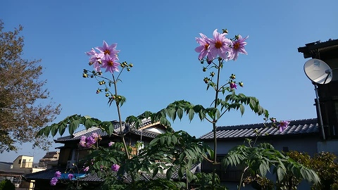 高川の堤防の道を歩いていたときだったかと思います。高くそびえる皇帝ダリアに遭ってしまいました。