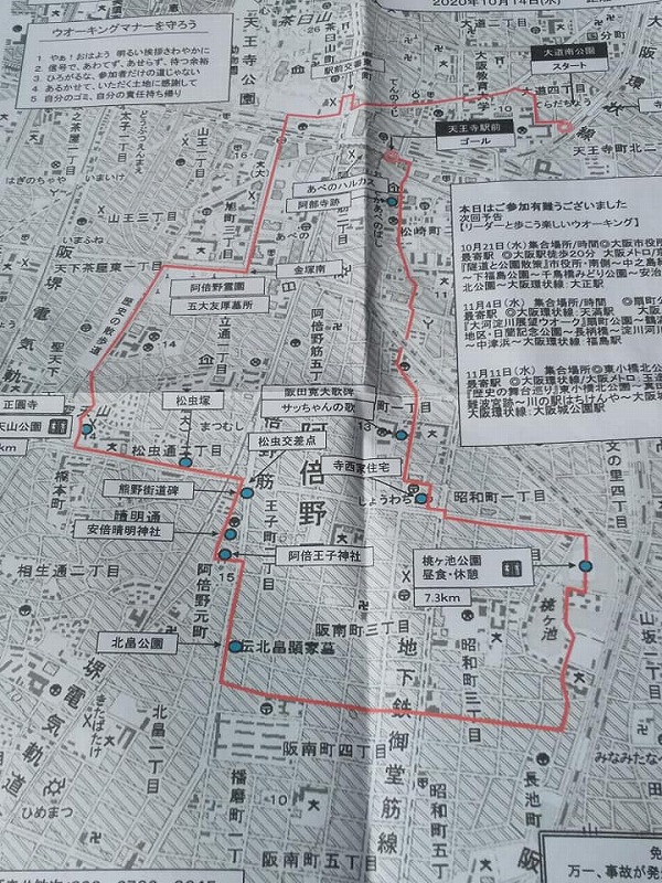 | いにしえのロマンを求めて 2020年10月14日 関西Rw 「いにしえのロマンを求めて」10km+おまけ(3km) 何度も歩いたところでした。何よりも、暑うございました。 ![]() 阿倍野墓地の西側「歴史の散歩道」が、相変わらずキツうございました。かつて、ここで足を痛めた記憶が残っています。 |
