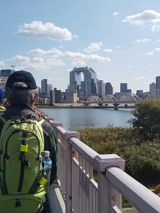 | 大河淀川展望ウォーク 2020年11月4日 関西R_w 「大河淀川展望ウォーク」10km+おまけ (3km) 寒かったり、暑かったりで、ダウンベストを着たり脱いだり・・ ![]() ![]() ![]() ![]() 淀川大堰 スターウォーズに登場したキャラクターを思い出すのですが、とりあえず調べてみました。「AT-AT ウォーカー」って、ご存じでしょうか? 調べてみると、ちょっと違っておりました。。 ![]() 長柄橋を渡り、淀川右岸の河川敷を歩きました。河川公園 (木川東1)で昼食。南南西の方向に梅田スカイビル。 ![]() すぐ東に、新御堂筋あり。地下鉄御堂筋線の車両が見えます。 ![]() 新淀川がなかった頃、中津川があり、その北側にあった渡し跡です。 ![]() 十三大橋を渡り、JR福島駅に向かいます。スカイビルが大きくなってきました。 |
